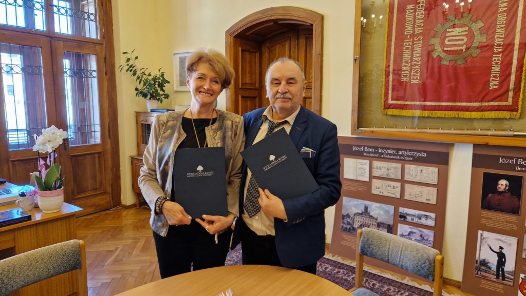Naczelna Organizacja Techniczna w Tarnowie podpisała umowę o współpracy z Wyższą Szkołą Biznesu – National Louis University w Nowym Sączu. Dokument został zawarty pomiędzy Prezes Zarządu NOT Renatą Łabędź a Rektorem WSB-NLU dr Dariuszem Woźniakiem, prof. WSB-NLU. Uczelnię podczas spotkania w Tarnowie reprezentował Pełnomocnik Rektora, dr hab. Tadeusz Mędzelowski, prof. WSB-NLU.